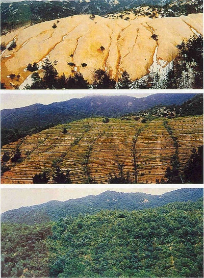 1960년대 대대적인 '치산녹화사업'이 추진되면서 우리나라의 산림 역사는 전환점을 맞이한다. 가장 먼저, 전국에 퍼져있는 화전민의 이주를 독려해 나무를 심을 터전을 마련했다. 다음으로 황폐한 산의 흘러내리는 흙들을 계단식으로 고정하는 사방사업이 시행되었다. 드디어 숲을 복수시킬 수 있는 최소한의 환경이 조성된 것이다.