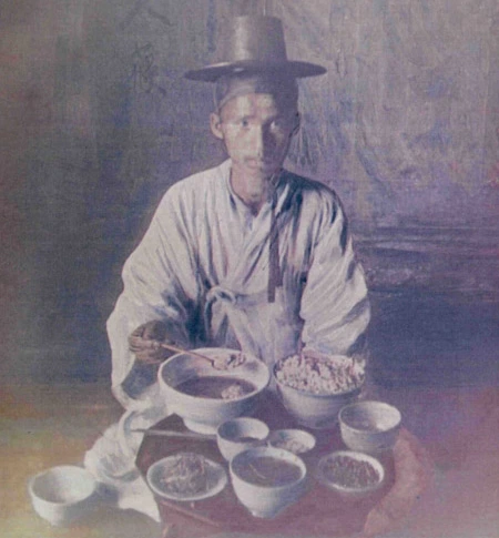 "이 나라를 찾은 방문객들은 조선인들이 먹는 엄청난 양에 다들 놀라움을 금치 못한다. 어머니들은 아이들이 더 삼킬 수 없을 때까지 억지로 밥을 먹인다. 그리고 나서는 커다란 나무숟가락을 뒤집어 두터운 손잡이로 아이의 배를 눌러 공간을 만들고, 이 불쌍한 아이에게 다시 꾹꾼 밥을 채운다. 조선인은 일본인의 세 배나 더 많이 먹는 것 같다."