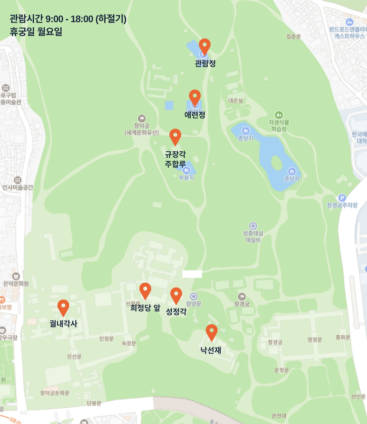 사람들이 잘 모르지만 창덕궁의 아름다움을 대표하는 장소라고 감히 말씀드릴 수 있습니다. 조선시대 대부분의 관청들이 육조거리와 같이 궁궐 밖에 위치해있었지만, 매일 긴밀하게 왕실을 보필하고 국사를 논의해야 하는 관청들은 궁궐 안에 위치해있기도 했습니다. 이를 궐 안에 있는 관아라고 하여 '궐내각사'라고 불렀습니다. 궐내각사는 일단 들어서면 미로 같이 얽힌 구조 때문에 길을 잃게 됩니다. 그런데 발길 닿는 곳 어디를 가도 참 아름다워서 이곳에서 일했던 관원들이 부러워지기까지 합니다.