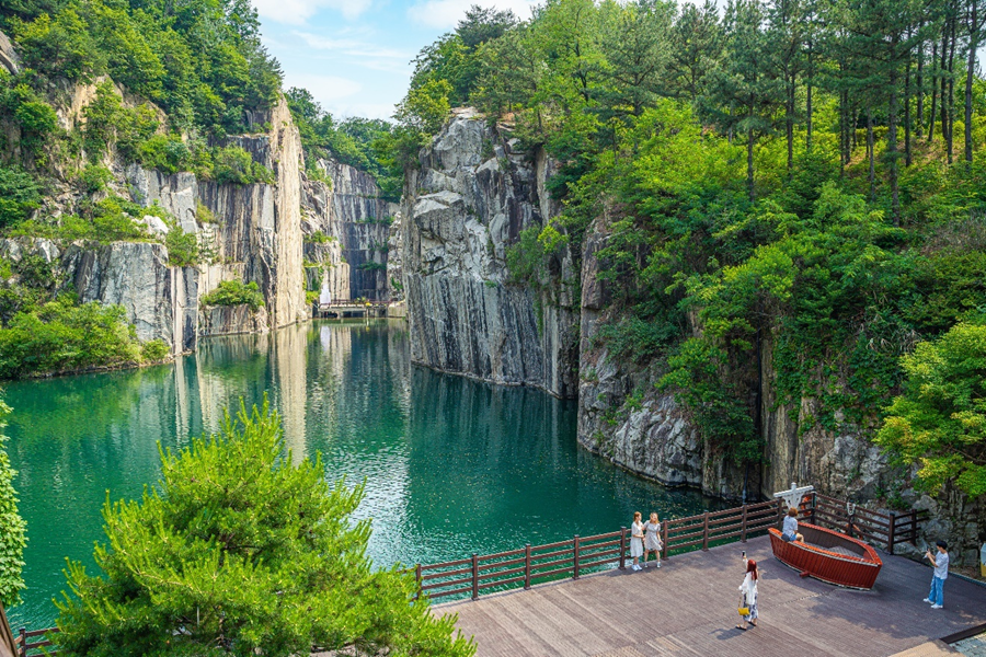 극중 해수가 삶을 마감하기 위해 호수로 뛰어들면서 고려로 타임슬립을 하게 되죠? 그 깎아지른 절벽과 함께 있던 호수가 바로 포천 아트밸리의 천추호입니다. 이곳은 1960년부터 약 30년 동안 질 좋은 화강암을 채석하던 곳이었습니다. 청와대, 국회의사당, 대법원, 경찰청, 인천국제공항, 세종문화회관 등 중요한 국가기관 건축에 사용된 화강암은 모두 여기서 채석했습니다. 이후 폐채석장으로 방치된 것은 포천시가 친환경 복합문화단지로 재탄생시킨 곳이 바로 포천 아트밸리입니다.