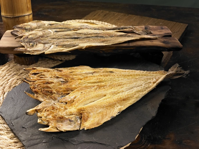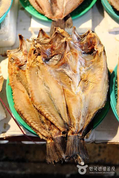 내륙 지방인 서울과 경기도 지역에서는 전이나 고기 반찬과 더불어 통북어나 굴비 같은 마른 생선을 올린다. 북어의 재료가 되는 명태는 알을 많이 낳아 다산과 풍요를 상징한다. 북어의 눈알이 잡귀를 물리친다고 여겨지기에, 머리까지 달린 통북어를 상에 놓는다.
