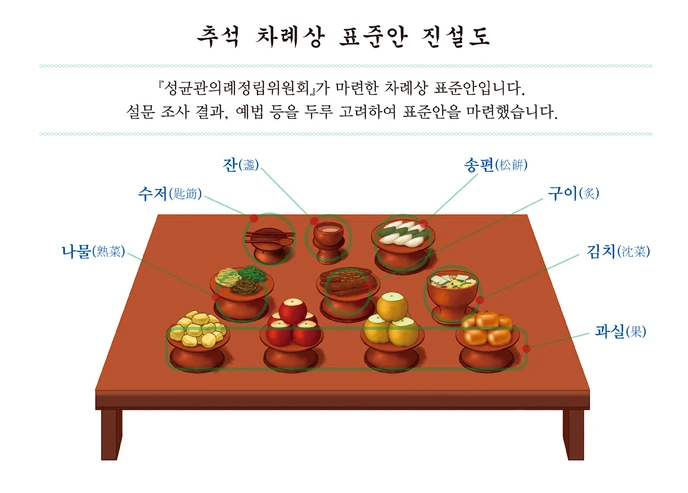 2022년 성균관의례정립위원회는 설날과 추석의 차례상 간소화 방안을 발표했다. 음식 수도 최대 9가지면 충분하고, 음식 순서 없이 편하게 배치하면 된다. 초기 차례상의 모습으로 돌아가 차례 음식에 대한 부담을 줄이고 각 가정의 결정에 맡긴다는 것이다.