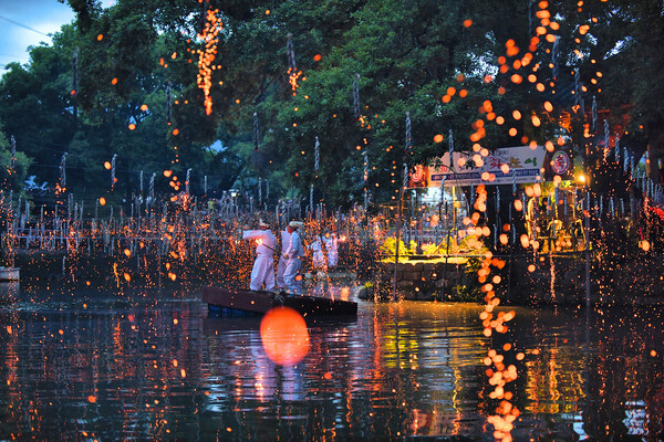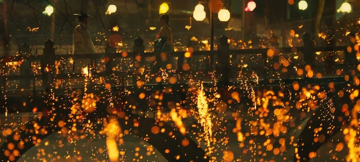 극 초반부 이태가 유정을 만나러 가면서 유정에게 살아주어 고맙다는 고백을 하는 장면은 영상미와 명대사로 인해서 주목을 끌었는데요. 이 아름다운 장면은 함안의 낙화놀이를 배경으로 하고 있습니다. 함안 낙화놀이는 군민의 안녕을 기원하는 뜻에서 매년 열리는 민속놀이로, 연등과 연등 사이에 참나무 숯가루로 만든 낙화를 매달아 이 낙화에 불을 붙여 꽃가루처럼 물위에 날리는 불꽃놀이입니다.