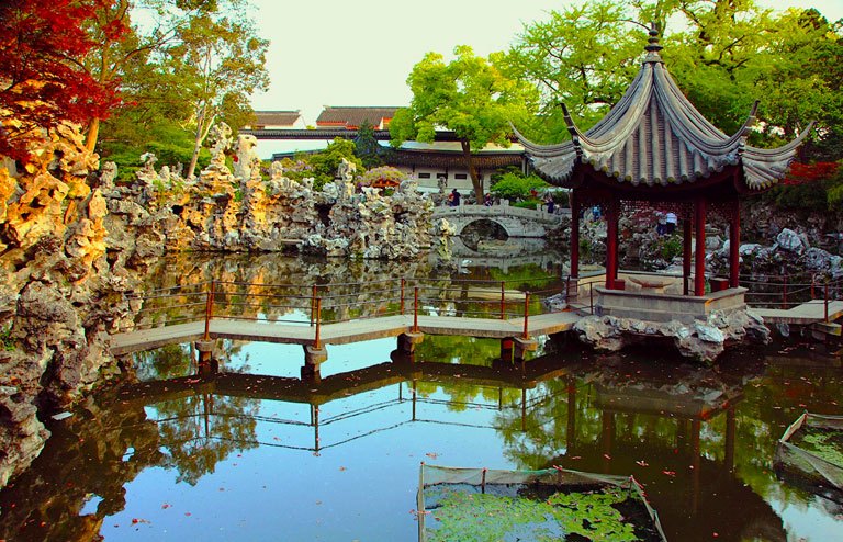 중국은 정원 대신 원림(園林)이라는 용어를 사용하는 데서부터 그 특징이 잘 드러난다. 뜰을 가꿔 숲을 만든다는 그 뜻처럼, 중국의 원림에는 또 하나의 작은 세계인 소천지(小天地)가 담겨있다. 그래서 중국의 조경에는 자연을 통째로 옮겨온다는 발상이 깔려있으며, 동굴, 산, 폭포 등의 다양한 자연환경이 하나의 원림 안에서 재현된 모습을 볼 수 있는 것도 이와 같은 맥락이다.