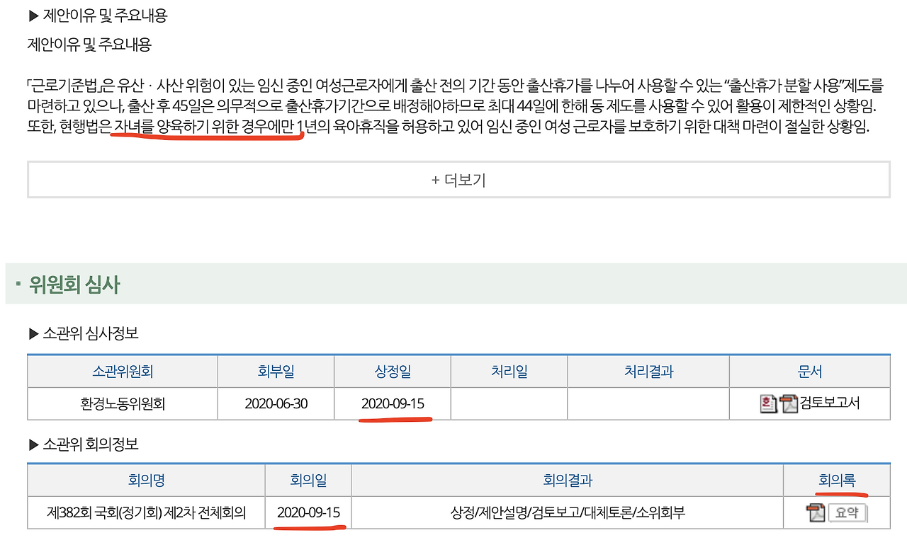 임신중 육아휴직 법안은 이날 상정은 되었지만 논의가 되지 않고 빠져서 지나가버린 것이었다.