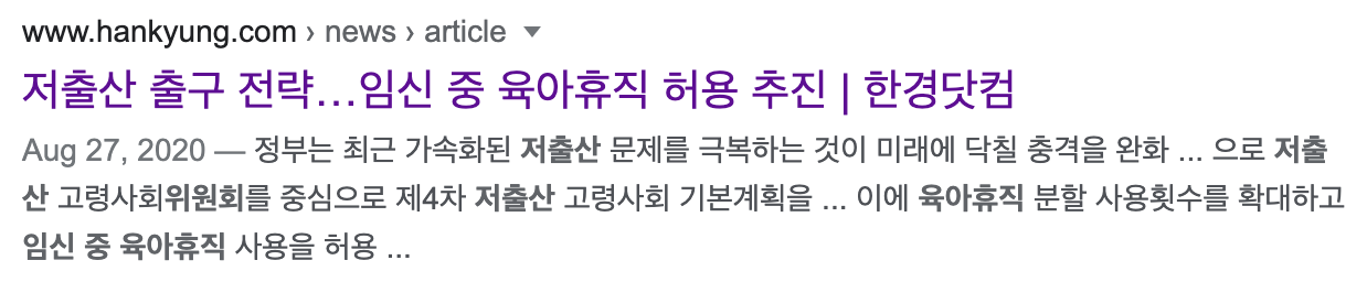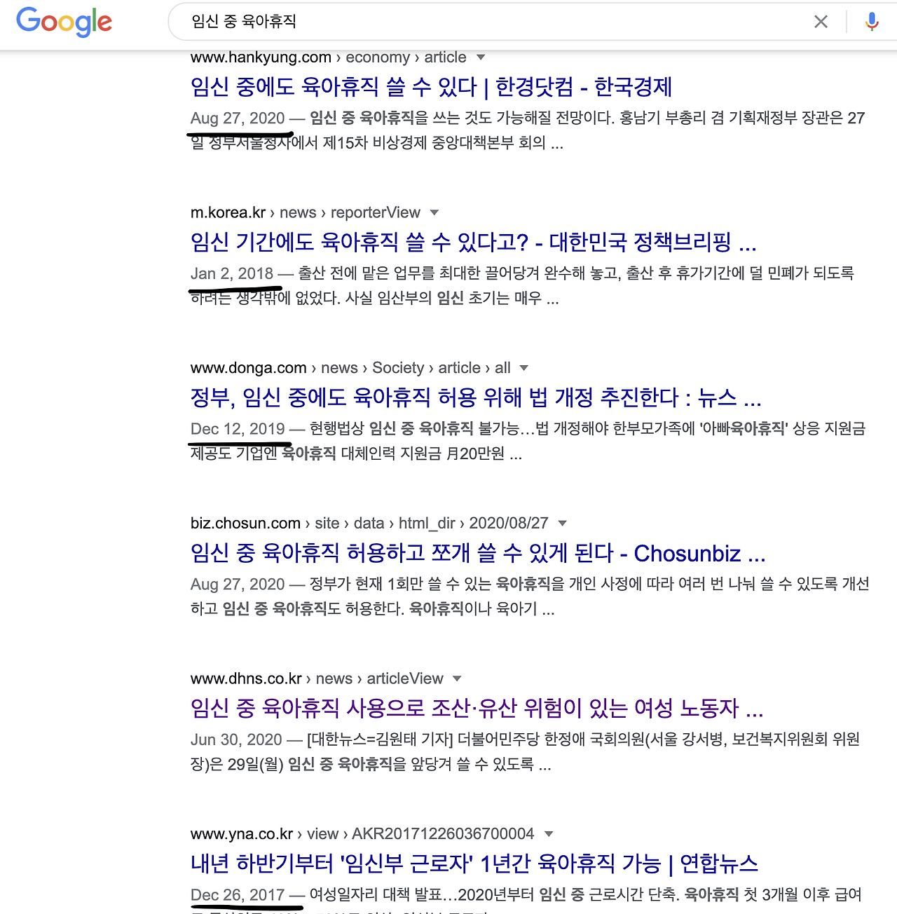 그런 상황에서 단비와 같은 소식이 들렸으니 그것은 바로 2020년 8월 27일에 정부 저출산 고령사회위원회를 중심으로 0명대의 저출산 상황을 타개하기 위해 현재 출산 45일 전부터만 쓸 수 있는 육아휴직을 그 전에 임신 중에도 쓸 수 있도록 바꾸도록 하겠다는 기사였다!