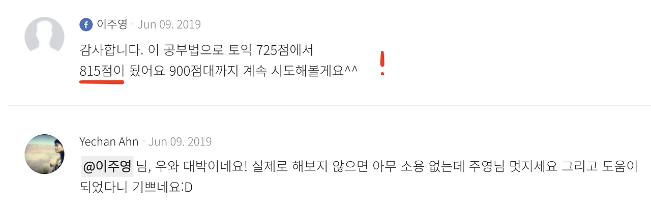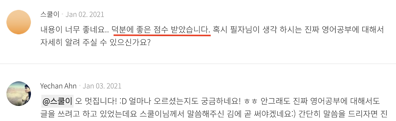 또 실제로 내 방법대로 공부를 해보신 분들 중, 성적이 오른 몇 분은 댓글로 성적 올랐다는 소식을 전해주시기도 하셨다:)