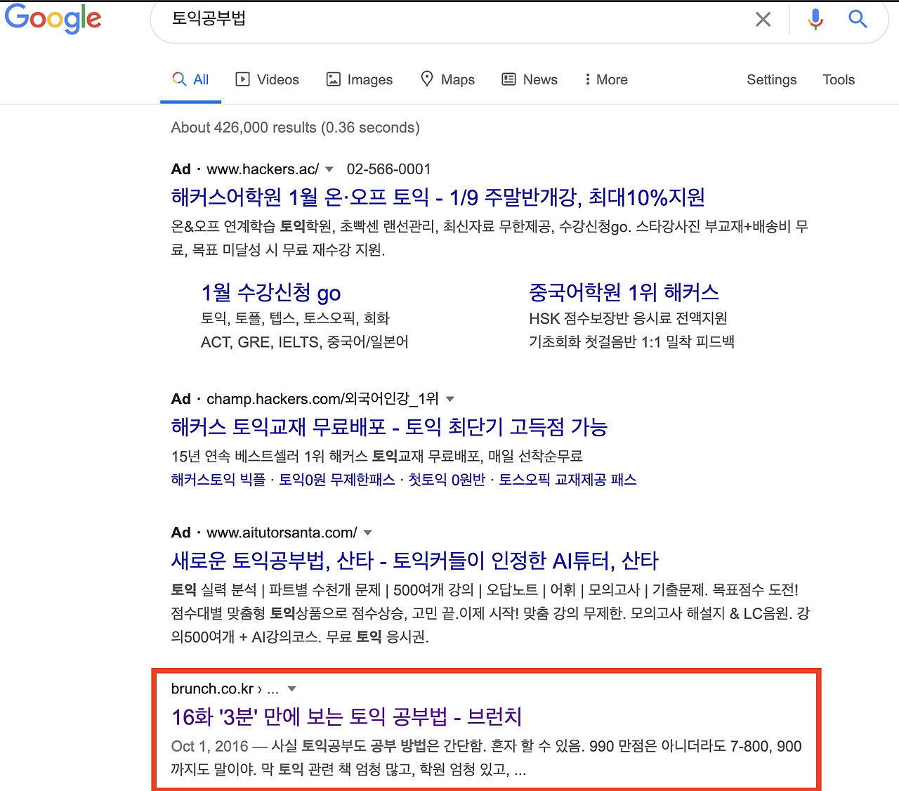 아래 글은 구글에서 '토익공부법'이라고 치면