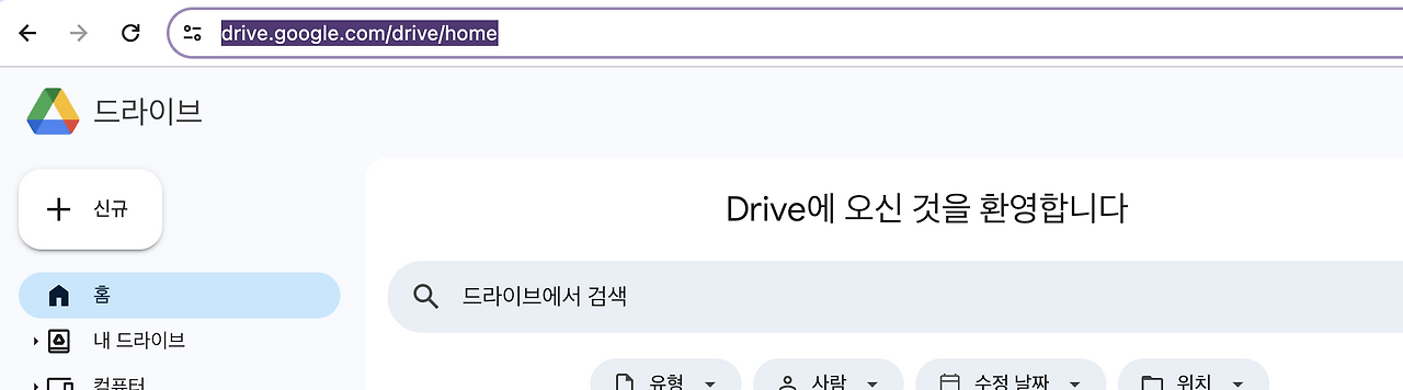 구글 드라이브에 파일을 업로드하려면 https://drive.google.com/drive/home 에 가서 신규를 눌러 파일을 업로드한다.
