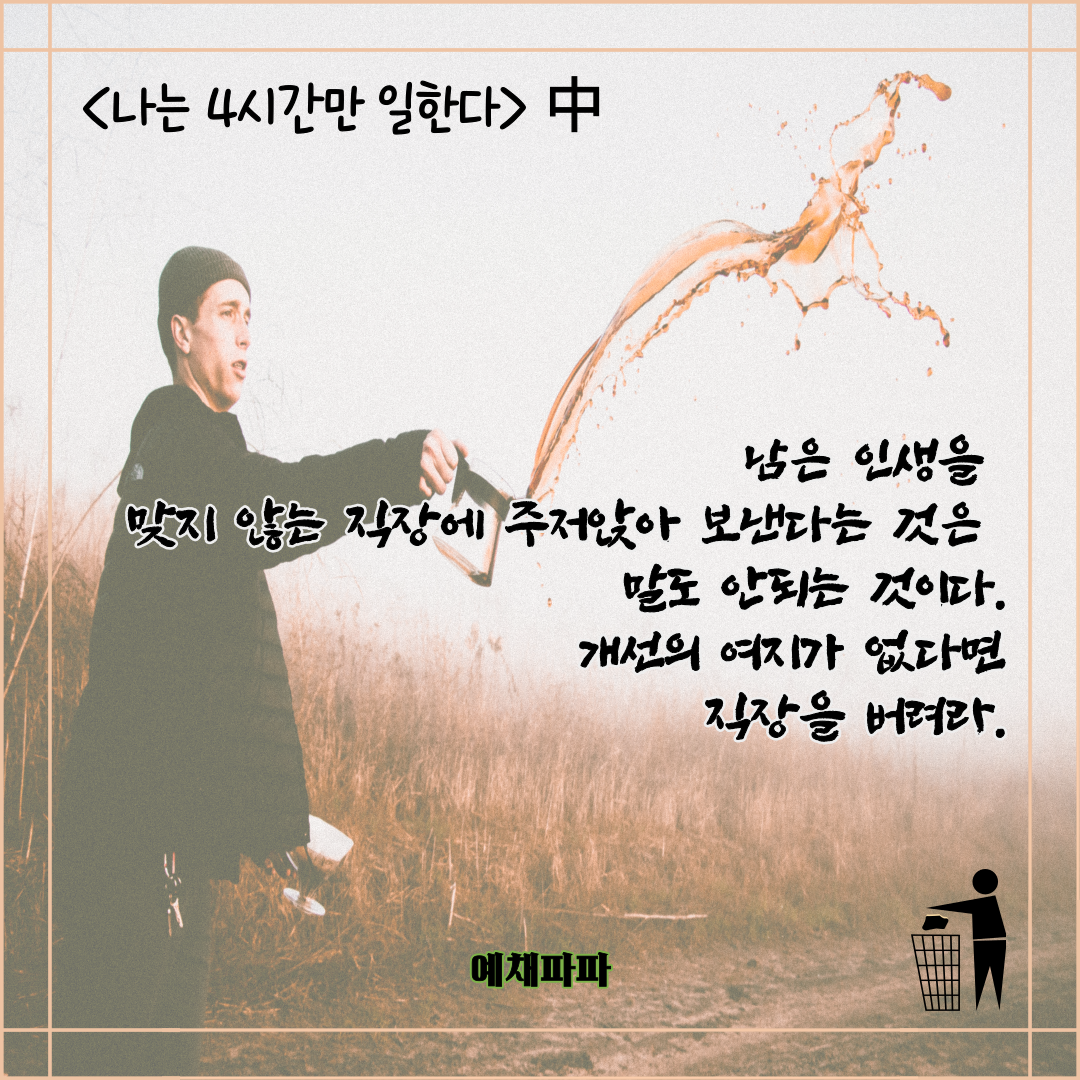 이 글에서 "직장"은 "나의 태도"로 바꾸어서 읽어야 한다.