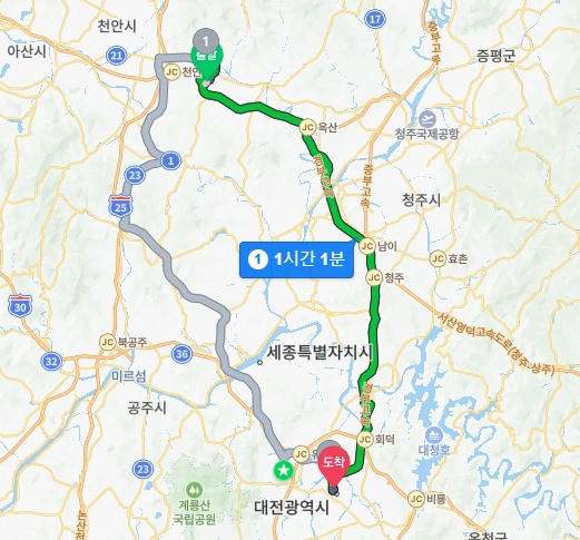 천안소노벨 → 천안독립기념관 → 국립중앙과학관 → 레지던스 호텔라인