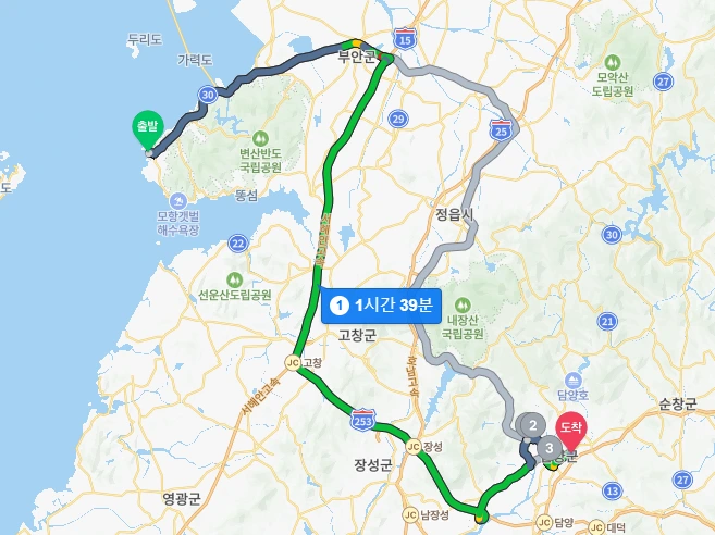 소노벨 변산 → 죽림원가든(구6753부대) → 딜라이트 담양