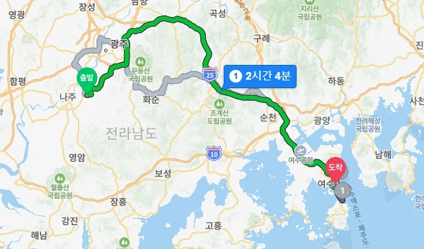 나주에서 출발한만큼 여수에 도착한 시간 자체가