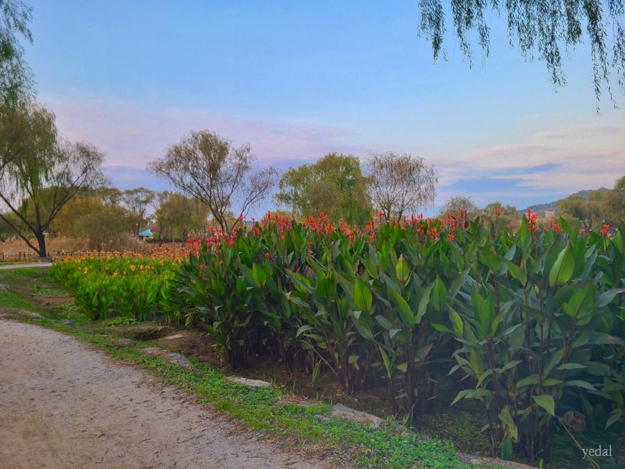 중앙에 있는 포룡정을 기준으로 한 바퀴 돌면 먼 곳까지 가지 않고도 정원을 다 둘러볼 수 있는데, 포룡정이 보이는 곳에 있는 기다란 그네를 타면서 볼 수 있는 풍경 또한 황홀하다. 노을이 절정을 이루고 있을 때 주황빛 그라데이션으로 물든 하늘과 연못 덕에 동화 같은 모습에 입이 떡 벌어지고야 말았다. 식물과 동물이 공생하는 청정지역 궁남지, 연인과 함께하는 산책길로 정말 더할 나위 없다.