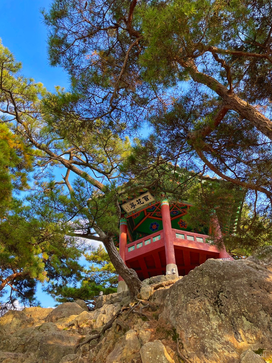 낙화암 바로 위에는 이곳에서 목숨을 버린 궁인들을 추모하는 의미로 새워진 백화정이라는 정자가 있다. 백화정 앞에서 바라본 백마강의 풍경은 마치 물감으로 색칠한 그림 같았다. 충분히 경치를 감상하고 다시 선착장으로 내려오는 길에 고란사를 들러서 소원을 빌며 커다란 종을 울려봤다. 이곳에서는 먹으면 3년씩 젊어져 할아버지가 약수를 먹고 아기로 변했다는 전설의 고란약수도 맛볼 수 있다. (먹고 올 걸 그랬나 싶다.)