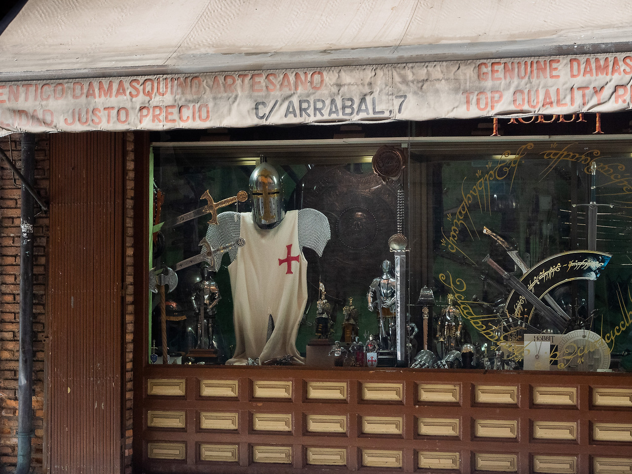 중세의 모습을 잘 간직하고 있어서 그런지 톨레도 거리 곳곳에서는 중세 시대의 검과 갑옷을 판매하는 상점들을 쉽게 찾아볼 수 있었다. 실제로 상점 내부에 들어가 보았을 때 모형이 아닌 실제 진검들이었다. 검을 제외하고도 우리나라에서는 판매될 수 없는 다양한 무기들이 공공연히 전시되어 있었다. 친구의 말을 들어보니 톨레도에서 생산된 검은 예전부터 그 명성을 널리 떨쳤다고 한다. 먼 과거부터 도시의 자랑으로 함께 해서 그런지 이런 무기 상점들은 어떠한 위화감이나 이질감 없이 톨레도 도시 속에 자연스레 녹아있었다.