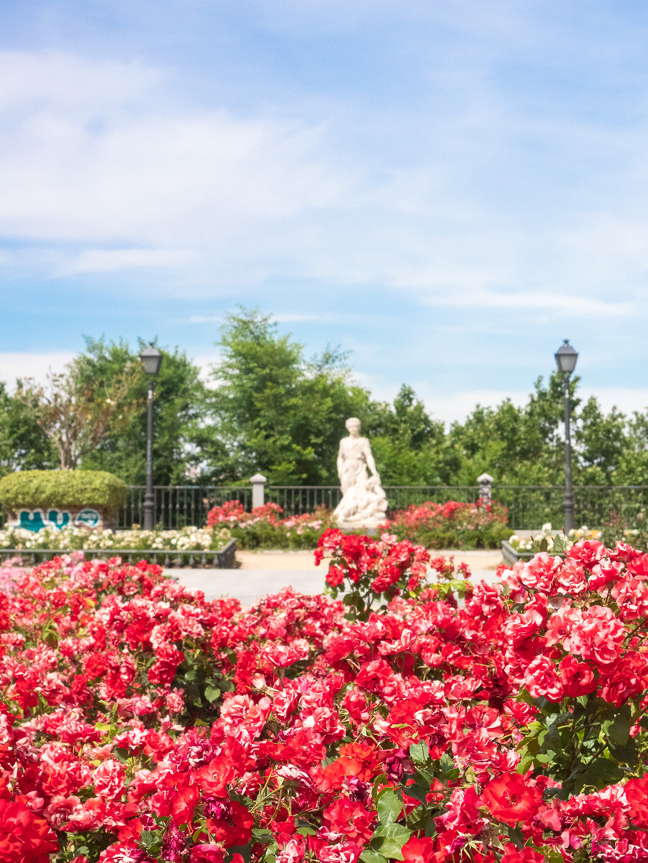 기대를 머금고 공원 입구의 작은 계단을 천천히 올라갔다. 공원에는 분홍빛의 단아한 꽃들과 함께 시원한 마드리드 전경이 펼쳐졌다. 다양한 색상과 여러 종류의 장미꽃, 하얀 대리석의 조각상이 정원 곳곳에 위치하며 낭만적인 분위기를 자아냈다. 이곳에서 사랑하는 사람과 마드리드의 노을을 바라본다면 잊지 못할 예쁜 추억을 만들 수 있을 것 같았다. 특히 나는 우아한 연분홍의 색깔을 자랑하는 한 장미꽃에서 눈을 떼지 못하고 한참을 바라보았다.