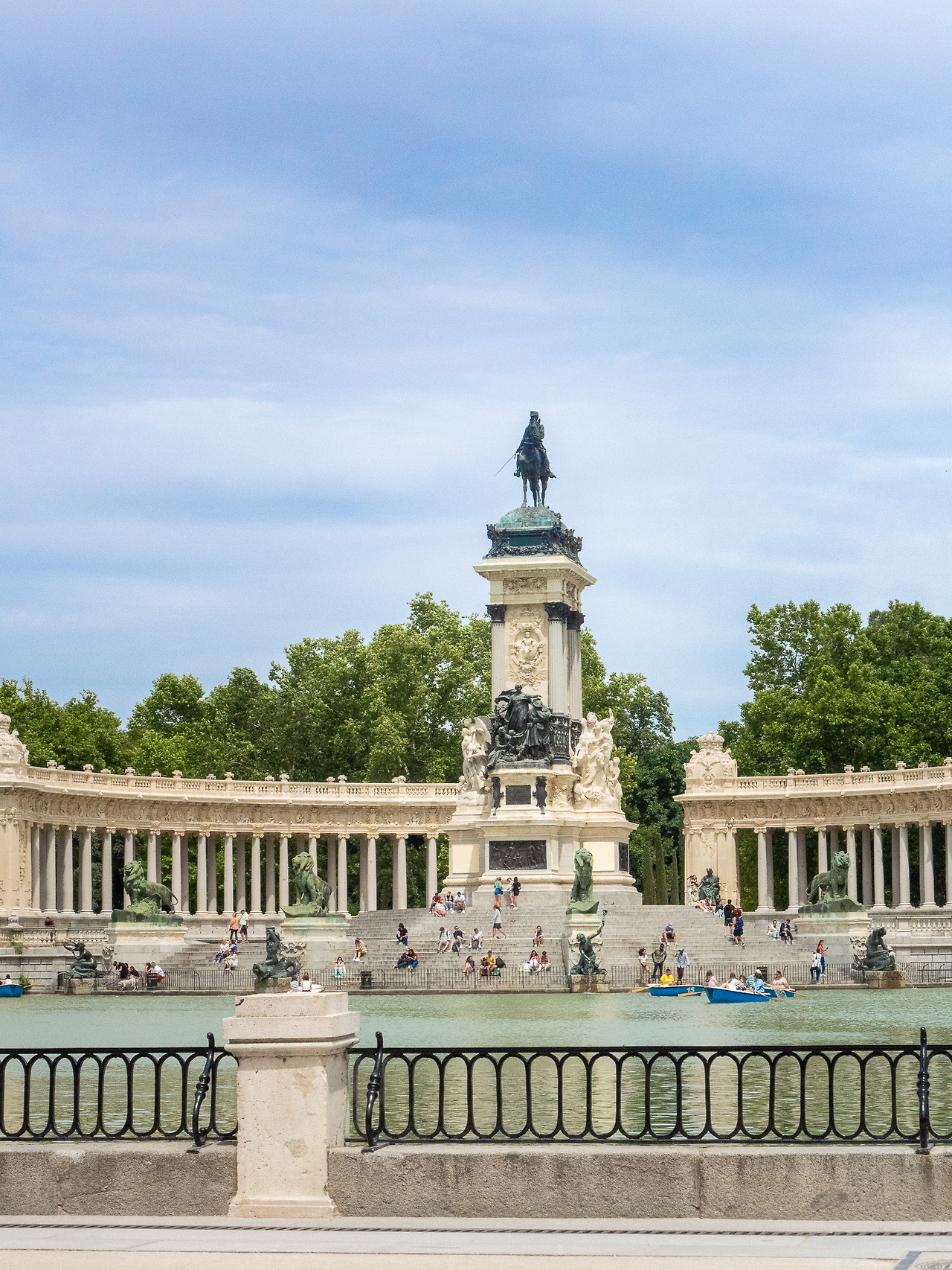스페인 도심 한가운데에 있는 레티로 공원이 꽤나 인상적이었다. 레티로 공원 안에는 넓은 호수가 있어, 이곳을 중심으로 넓은 녹지를 형성하고 있었다. 호수 안에는 작은 뗏목들이 둥둥 떠다니며, 많은 커플들이 데이트를 즐기고 있었다. 또한 공원 안에는 '크리스탈 궁전'이라는 예쁜 전시 공간도 볼 수 있었다. 우리도 공원 구석 한쪽 나무 아래의 그늘진 벤치에 앉아 시원한 바람을 쐬며 지친 발과 다리를 풀어주었다.