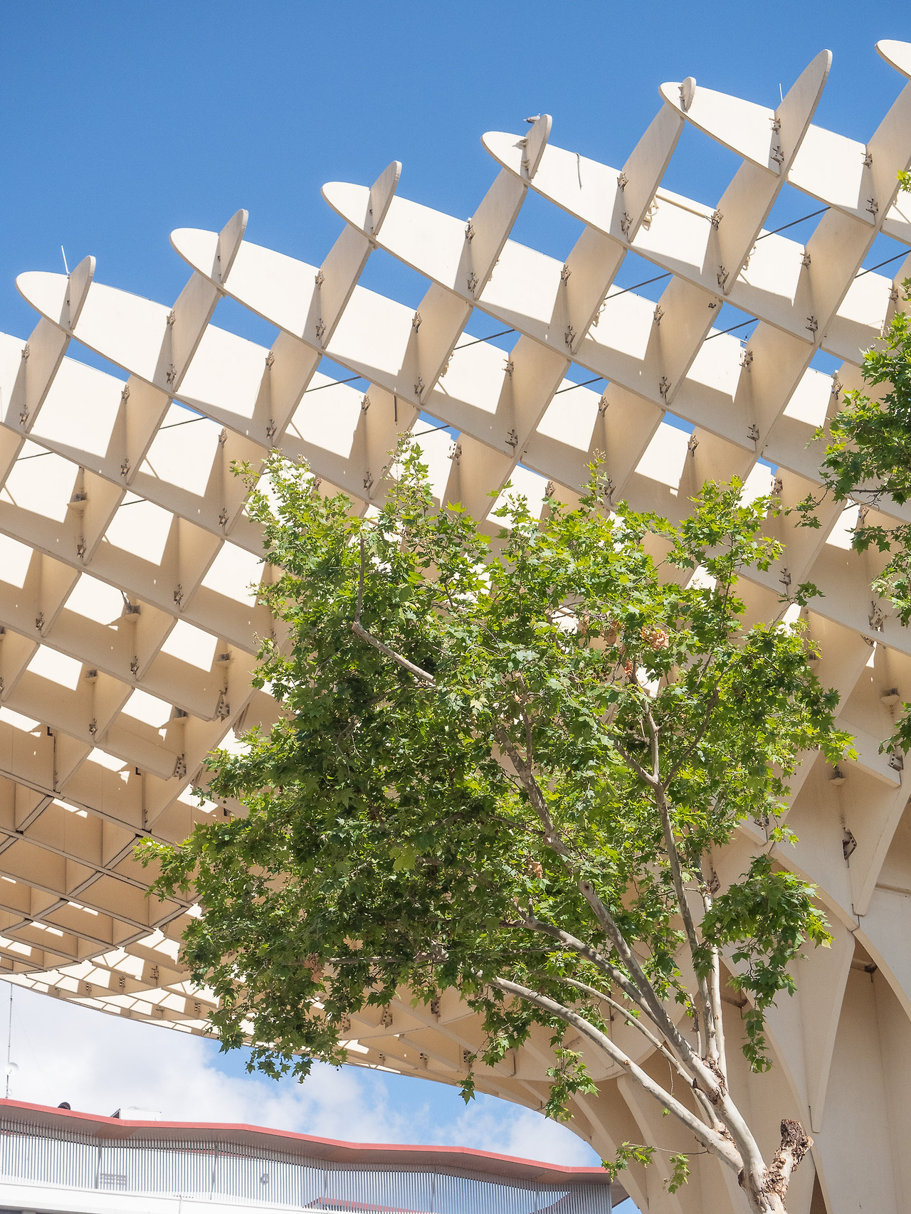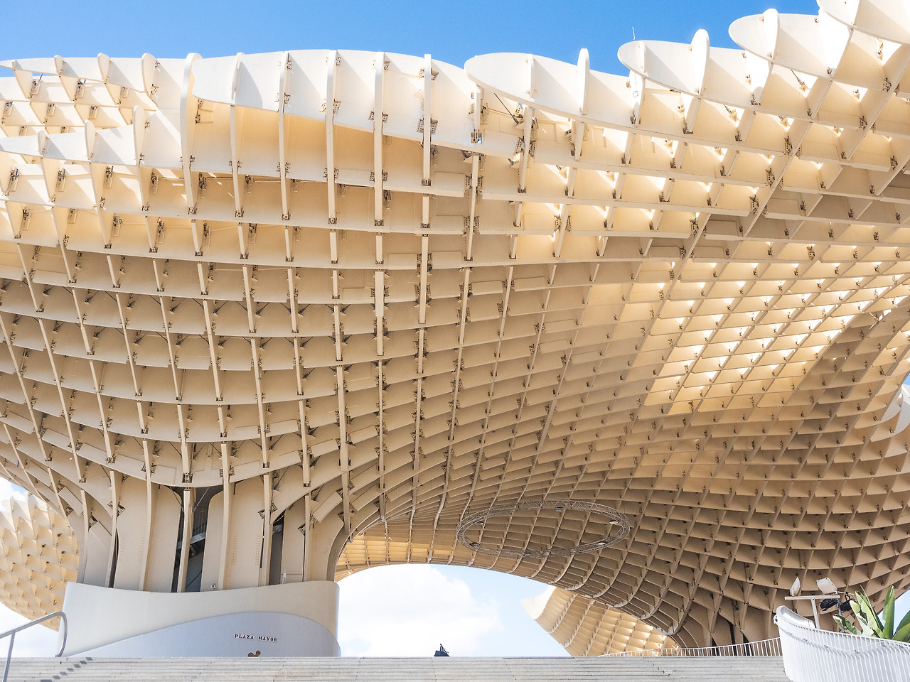 숙소로 걸어가는 길에 우연히 세비야의 관광 명소 중 하나인 '메트로폴 파라솔'을 지나쳤다. 이곳은 세계에서 가장 거대한 목조 건물로써 그 이름을 알리고 있다. 세비야에 방문하는 여행객들에게는 꼭 방문해야 할 필수 코스 중에 하나이다. 특히, 입장료를 지불하면 파라솔 구조물 위 산책로를 걸어 다닐 수 있으며, 26m 높이의 테라스에서 보는 노을이 아름다운 것으로 유명하다. 밤늦게까지 운영하므로 이곳에서 야경을 보는 것 또한 추천한다.