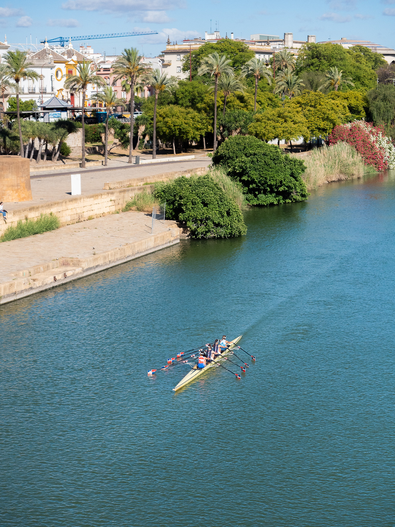 과거의 과달키비르 강이 세비야 사람들의 생존을 책임졌다면, 현재는 삶의 만족도와 행복을 책임지는 듯하였다. 조정과 카약을 즐기며 강 위로 유유히 떠다니는 사람들을 볼 수 있었다. 세비야를 방문한 이 날은 화요일이었고, 해가 이제 막 중천을 지난 오후 약 2-3시였던 것을 감안하면, 여유를 만끽하는 세비야 사람들의 삶을 잠시나마 엿볼 수 있었다. 또한 강을 따라 길게 이어진 산책로 위로 조깅과 사이클링 등 각종 실외활동을 즐기는 시민들이 가득하였고, 평일 오후 시간을 이렇게 취미로 보낼 수 있는 세비야 사람들이 부럽게만 느껴졌다.