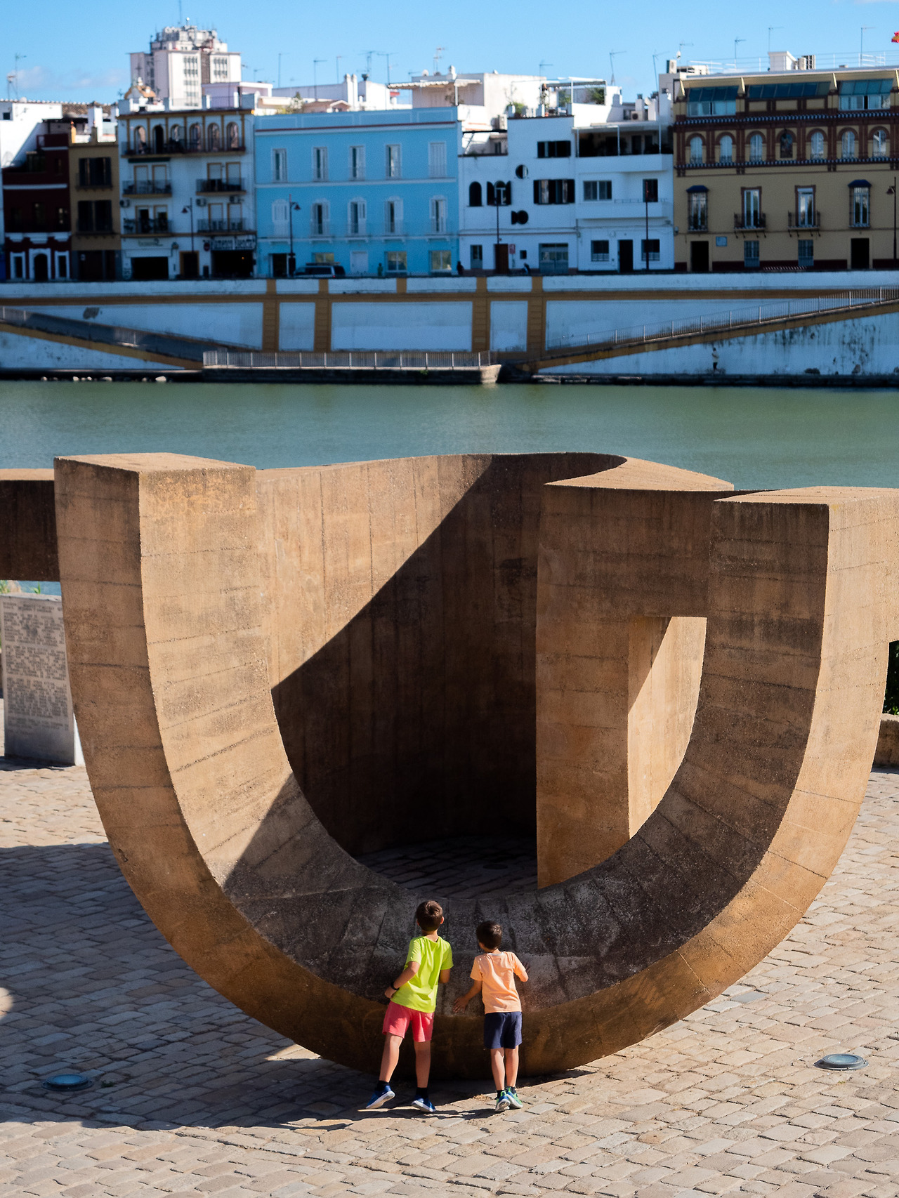 나도 여느 세비야 사람들처럼 강가 그늘 아래의 한 벤치에 앉아 혼자 여유를 만끽하고 있었다. 그리고 내 시야에는 더운 날씨에도 불구하고 신나게 뛰어노는 꼬마 두 명이 보였다. 꼬마 녀석들은 뭐가 그리 즐거운지 사소한 것에도 서로 웃음이 끊이질 않았고, 뜨거운 햇빛 아래에서도 지치지 않는 그 녀석들의 체력이 부러울 따름이었다. 아니 아무런 세상 걱정 없이 지금 이 순간을 가장 행복하게 살아가고 있는 저 녀석들이 부러웠던 것 같다.