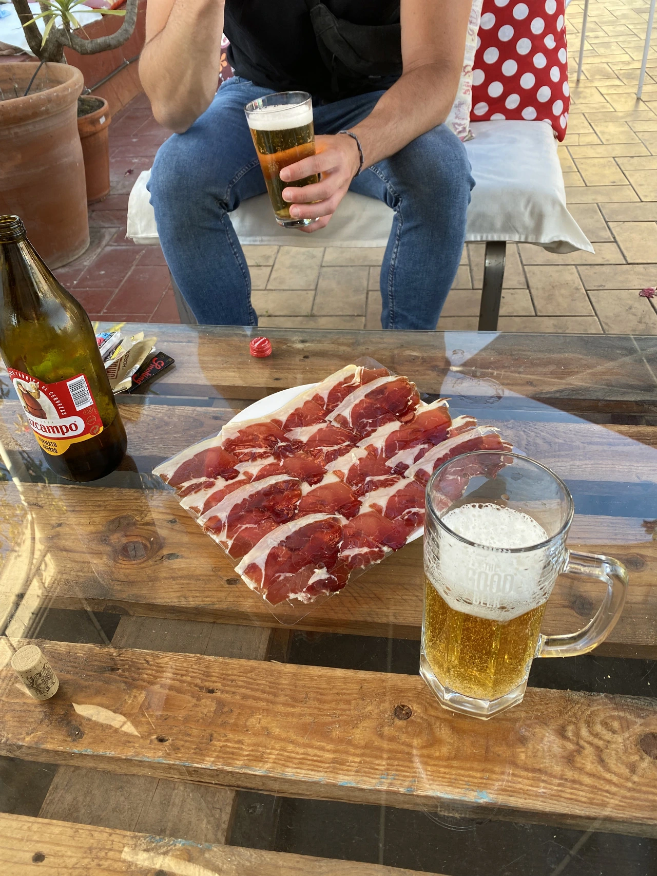 한참을 돌아다니고 어느덧 해가 떨어지기 시작했다. 오래 걸어 다닌 탓에 체력이 방전되어 몹시 피곤한 상태였다. 그러나 이대로 그냥 숙소에 들어가기에는 뭔가 아쉬웠다. 어떤 걸 할지 고민하던 중 여태 쌓였던 피로를 시원하게 풀기 위해 스페인의 유명한 음식인 '하몽 (Jamon)'을 안주삼아 스페인 로컬 맥주를 마시며 하루를 마무리하기로 했다.