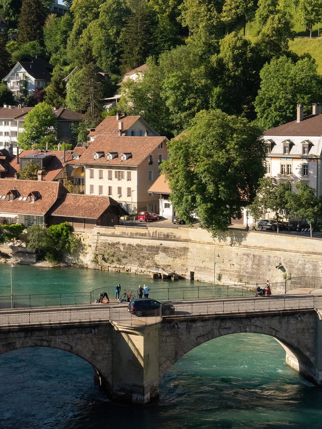 베른이 좋았던 가장 큰 이유는 도시를 둘러 말발굽 모양으로 흐르는 '아레(Aare) 강'이었다. 스위스를 흐르는 가장 긴 강이며, 오묘한 에메랄드 빛깔을 내어 도시의 분위기를 한껏 아름답게 만들어주었다. 특히, 해가 질 때 노을빛을 머금은 베른의 경관은 마치 몽환적인 동화 속 풍경이 되어 그 누구라도 사랑에 빠질 것만 같은 곳이었다.
