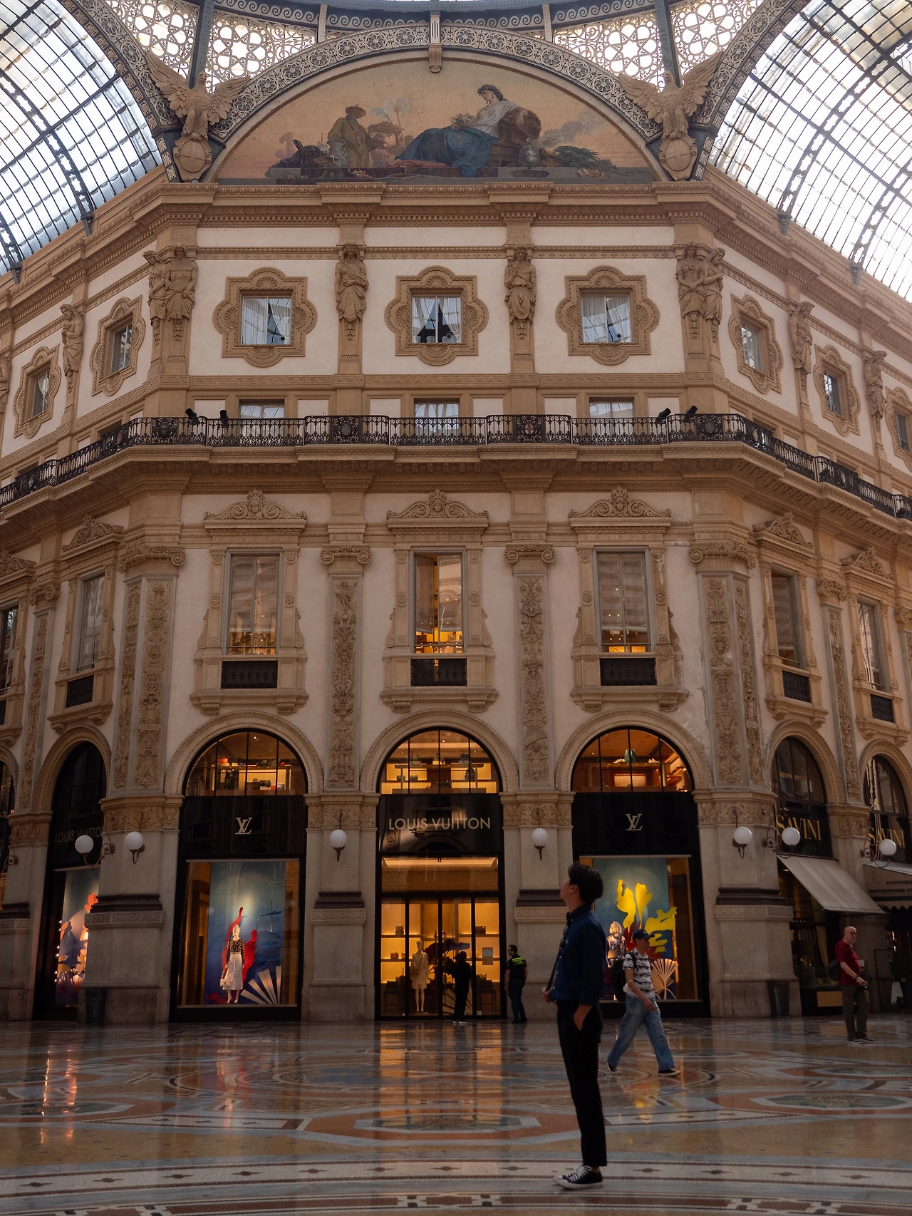 밀라노가 패션의 도시인만큼, 갤러리아 내에 있는 화려한 명품 브랜드 상점들을 돌아보며 생각에 잠겼다.