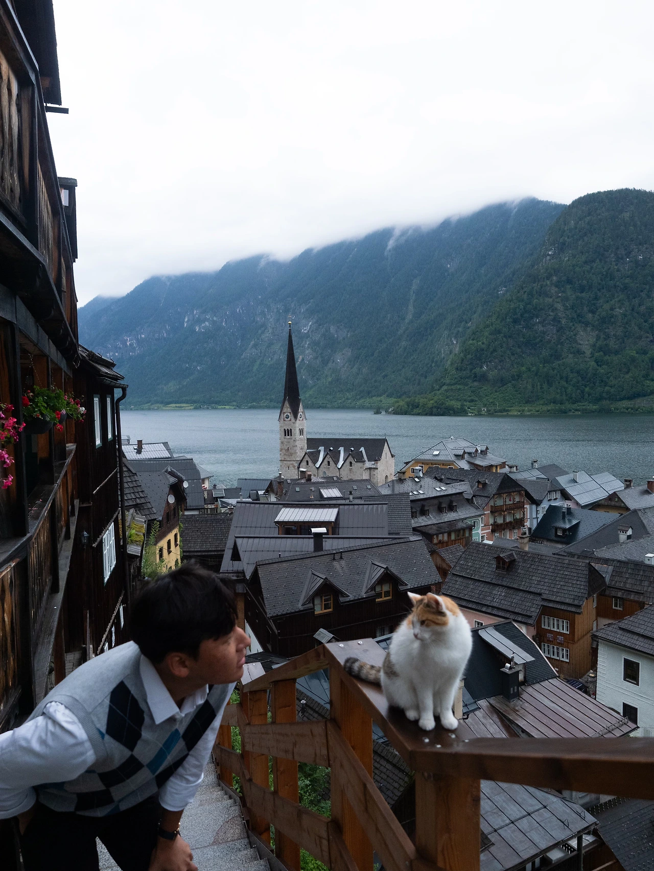 한 걸음씩 올라갈 때마다 새로운 지붕을 하나씩 발견하던 찰나, 어디선가 '야옹'하는 소리와 함께 어떤 낯선 존재가 내 앞길을 가로막았다. '야옹이'였다. 그는 마치 할슈타트의 문지기를 자처하듯 더 이상 내가 위쪽으로 올라가지 못하게 길을 막았다. 아니 '귀여움을 무기로 나의 발걸음을 사로잡았다'가 맞는 표현인 것 같다. 내가 더 이상 할슈타트에 깃든 비밀을 알지 못하게 하려 찾아온 수문장인 게 분명했다. 우리는 서로의 눈을 뚫어져라 쳐다보며 한동안 팽팽한 긴장감을 유지했다. 그러나 귀여움에 못 이겨 내가 먼저 공경하게 손을 내미니 그제야 이 수문장은 마음의 문을 열고 나를 받아주었다.