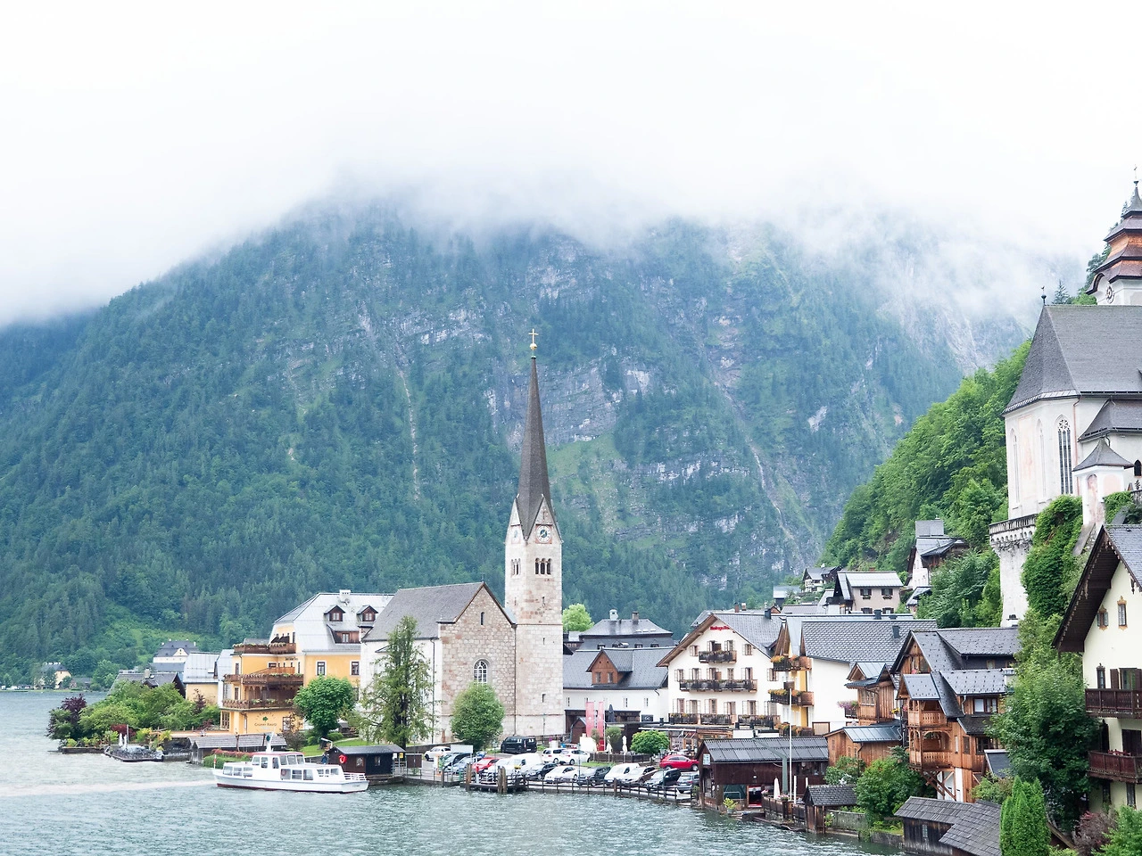 산들을 넓게 뒤덮은 하얀 비구름이 아침해를 가려준 덕분에 할슈타트로 가는 기차 안 못다 한 잠을 편하게 잘 수 있었다. 여명은 아주 부드럽게 아주 서서히 주변을 밝혀주며 근처 사물의 부드러운 테두리를 겨우 알아볼 수 있게끔 비춰줬다. 중간에 다른 기차로 한 번, 페리로 또 한 번 이렇게 총 두 번의 환승을 거친 후에야 할슈타트 마을에 도착할 수 있다. 적막 가득한 아무도 없는 페리 안, 저 멀리 창문 너머 산 쪽을 응시하니 오스트리아에서 가장 아름다운 마을 할슈타트가 보이기 시작했다.
