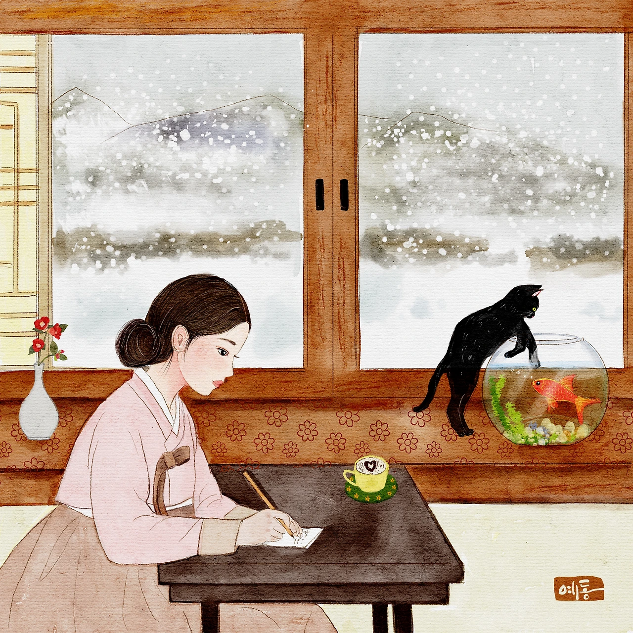 발을 적시며 어항 속 금붕어와 놀아 준다면