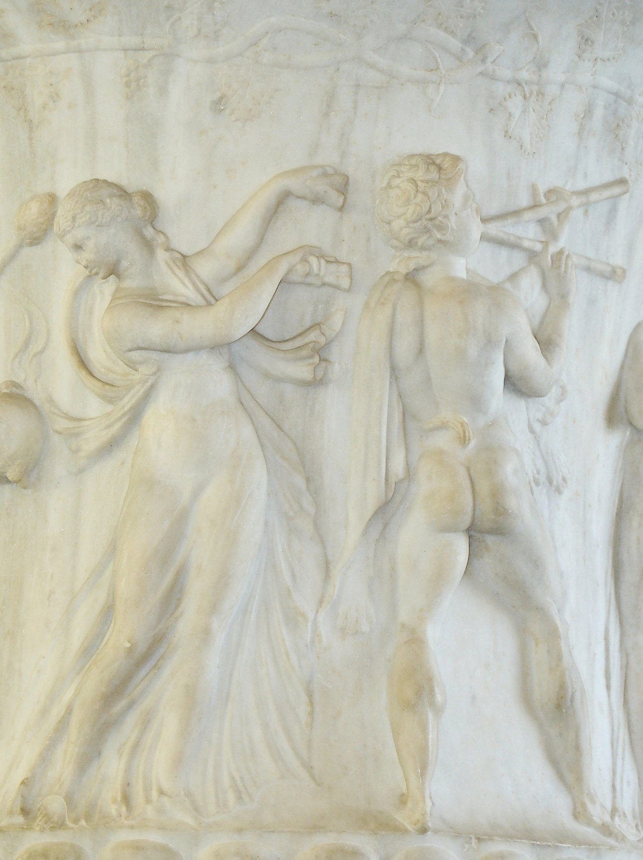 태양, 교육처럼 똑바른 이미지의 아폴론과는 다르게, 디오니소스는 다산과 술의 신이다. 아폴론은 규격 있는, 딱딱한 이런 키워드가 떠오른다면 디오니소스는 오락, 유흥, 술 이런 키워드가 떠오른다. 정반대의 이미지라서 그런지 플라톤은 아울로스가 정서교육상 좋지 않은 악기라고 생각했다.