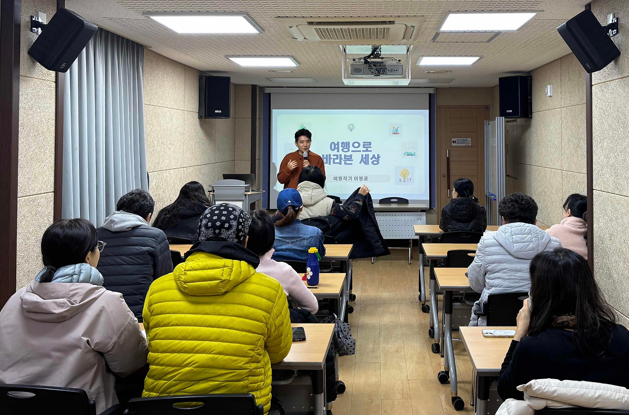 2025년 하반기에만 속초문화관광재단, 합천도서관, 인천해돋이도서관, 순천풍덕글마루도서관, 안양벌말도서관, KB손해보험, 고양시 인재교육원, 백화점문화센터, 국방대학교, 한국여행작가협회 등 여러 곳에서 여행 강의를 진행했습니다.