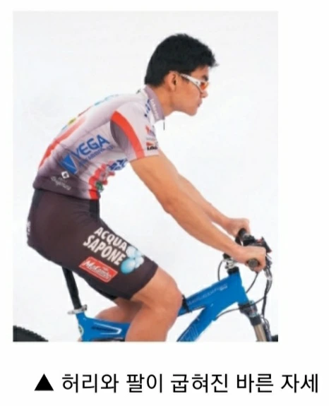 4) 다리와 발은 자전거와 수평이 되어야 페달링 효율이 가장 좋다. 초보자들은 페달링을 할 때 다리를 벌리거나 오므리는 경우가 많다. 다리가 수평이 아닌 상태로 계속 페달링을 하면 무릎 관절과 인대에 무리가 간다.