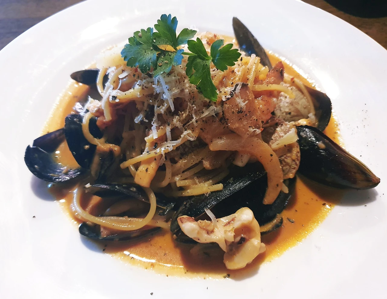 해산물 향이 가득했던 로제 파스타, 적당히 어두웠던 실내, 들뜨게 하는 화이트 와인. 일주일 동안 배달음식만 먹었다고 했더니 신선한 야채를 많이 먹으라며 건네준 듀에 부르스게타, 조근조근 나눴던 이야기들. 그 시간들이 그림처럼 남았다.