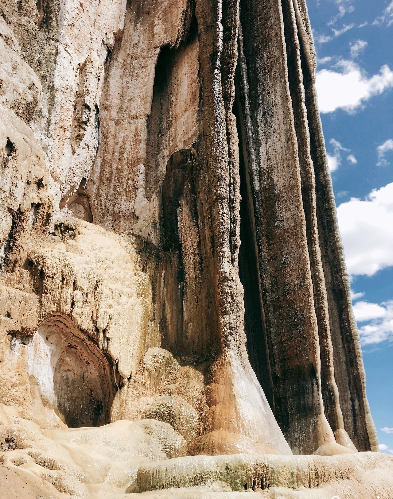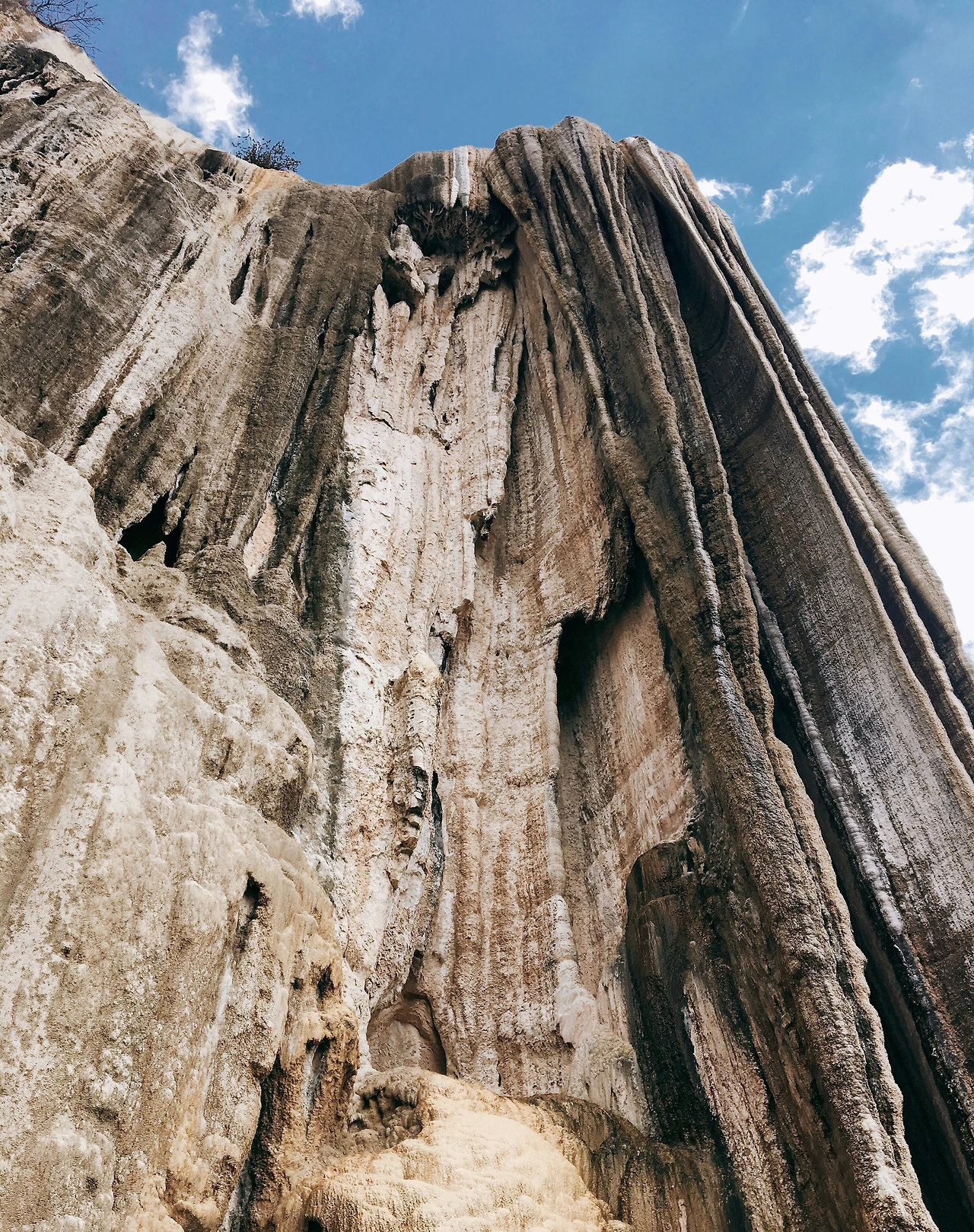 이에르베 엘 아구아는 '끓는 물' 이라는 의미를 갖고 있다. 절벽에서 샘솟는 용천수가 있기는 하지만 실제로 이 물은 하나도 뜨겁지 않다. 석회수가 흘러내린 자리에 물이 증발하고 남은 석회가 굳어 생겨난 모습이 폭포수와 같아 붙여진 이름이라고 한다. 멀리서 보는 그 모습은 절경이다. 그리고 멕시코의 파묵칼레라는 별명을 가지고 있는 곳이지만 사실 사진 속에 보이는 노천탕은 인공적으로 만든 곳이다.