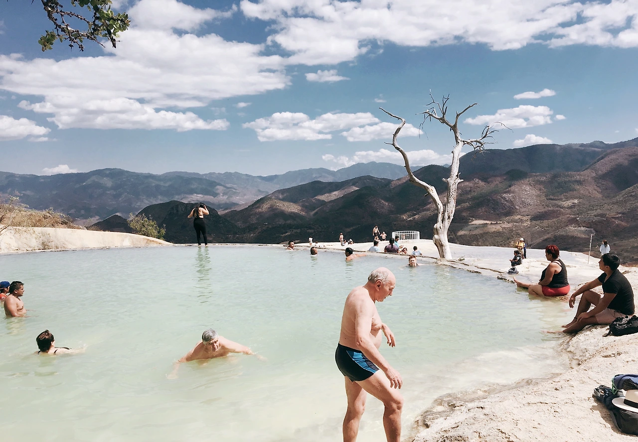 트레킹을 마치고 돌아와서는 노천탕 근처에 앉아 물에 발을 담그고 여유로운 시간을 보냈다. 물가에 앉아 있으면 왜 이렇게 시간이 잘 흘러 가는지. 더 날씨가 따뜻한 날에 빠트리지 않고 수영복을 들고 오고 싶다는 생각이 들었다. 절벽위 노천탕에서 즐기는 멕시코의 대자연.