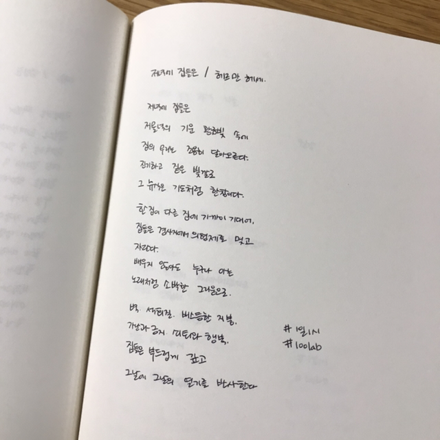 저녁에 집들은저물녘의 기운 황금빛 속에집의 무리는 조용히 달아오른다.진기하고 짙은 빛깔로그 휴식은 기도처럼 한창이다. 한 집이 다른 집에 가까이 기대어,집들은 경사지에서 의형제를 맺고자란다,배우지 않아도 누구나 아는노래처럼 소박한 그리움으로. 벽, 석회칠, 비스듬한 지붕,가난과 긍지, 쇠퇴와 행복,집들은 부드럽고 깊게그 날에 그 날의 열기를 반사한다.
