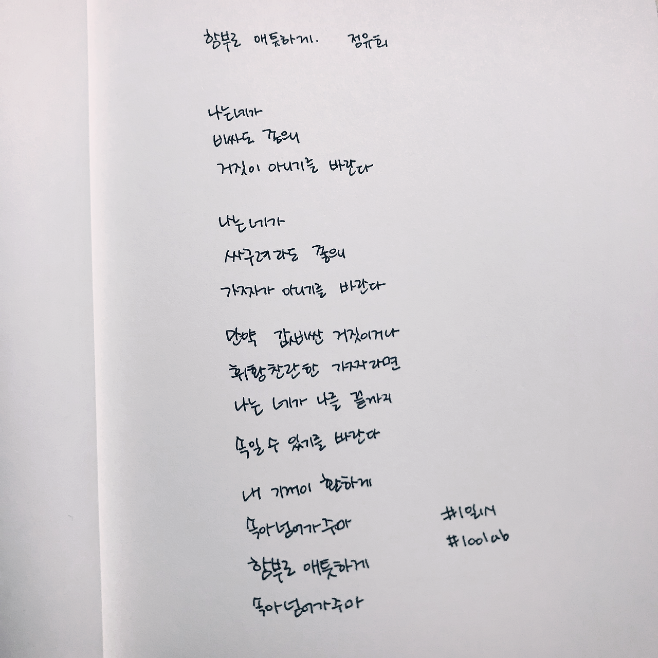 나는 네가 비싸도 좋으니거짓이 아니기를 바란다나는 네가싸구려라도 좋으니가짜가 아니기를 바란다 만약 값비싼 거짓이거나휘황찬란한 가짜라면나는 네가 나를 끝까지 속일 수 있기를 바란다내 기꺼이 환하게 속아 넘어가 주마함부로 애틋한 듯 속아 넘어가 주마