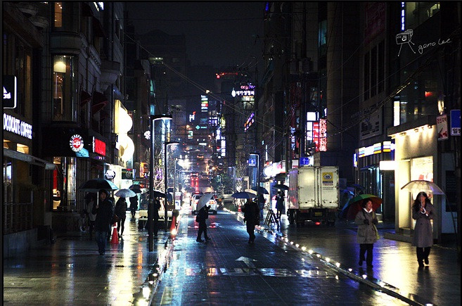 한 복판의 거리는 온통 고요한 우산길