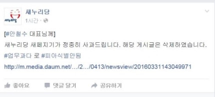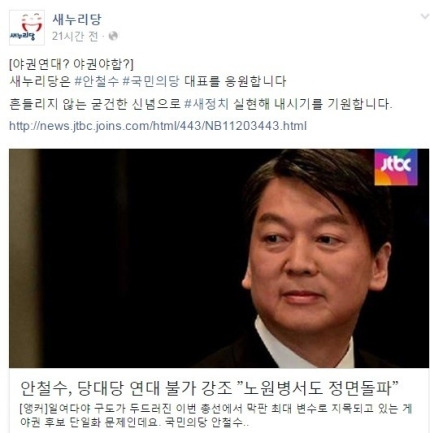 새누리당의 안철수 응원?☞ 글삭제 후 해쉬태그 가관