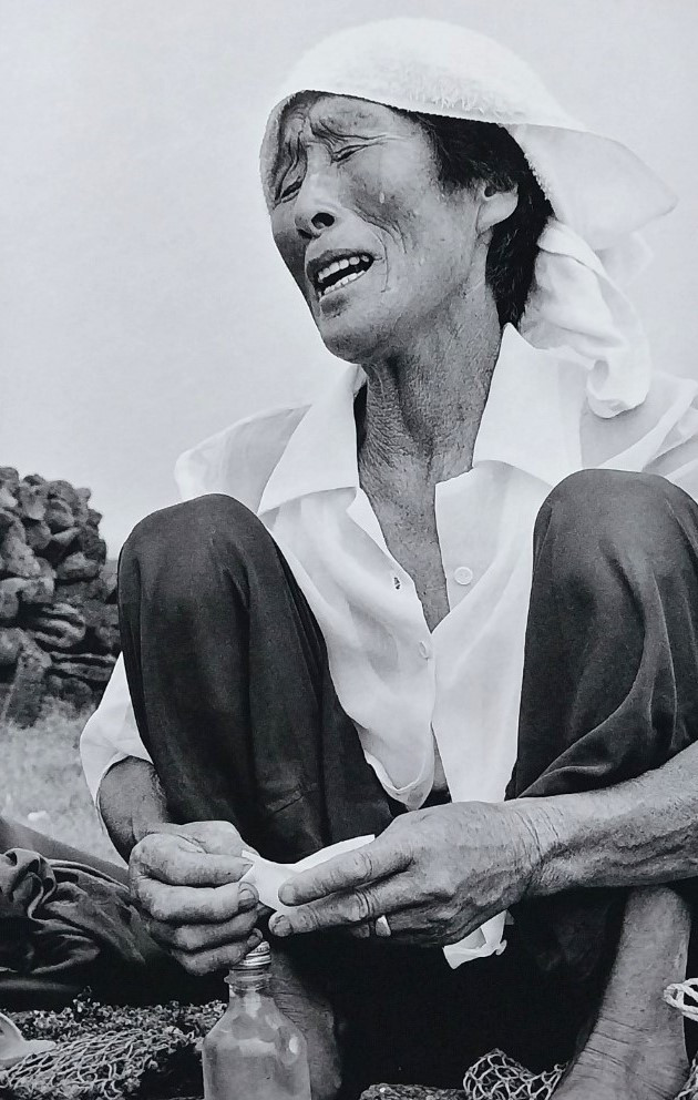 “난 물에 깊이 들려고 쓰디쓴 뇌선을 먹주게. 깊은 데 들어갈수록 머리가 깨질 듯이 아파영. 오늘 바당에 들민 살아 돌아올지, 영영 못 돌아올지 알지 못허연. 그냥 나를 보살펴 달라고 요왕님께 빌기만 허주.” 요즘은 진통제 종류가 다양하지만 오랫동안 가루약 뇌선뿐이었다. 약으로 두통을 다스리며 삶과 죽음의 가파른 경계에 서 있는 삼촌들을 찍으며 애처러워 울었고, 한없이 스스로를 낮추는 삼촌들을 찍으며 가여워 울었다. 몇 십 년이 지난 지금도 이 사진을 볼 때마다 운다.