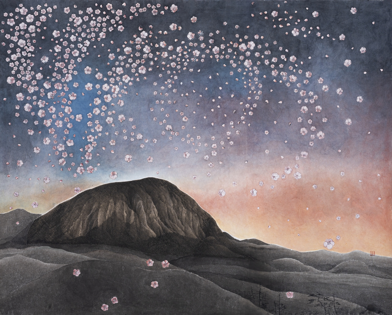 해녀에게 관심이 생긴 뒤로 인사동 제주갤러리에 자주 들렀다. 2024년 2월, 공필화가 최미선을 갤러리에서 처음 만났다. 중국에서 20여 년 활동을 하던 그녀는 귀국해 제주에 집을 지음으로써 버킷리스트 하나를 완성했다. 정착한 지 십여 년. 최미선은 꽃 그리길 즐기던 화가였다. 꽃과 제주를 한 화면에 담을 순 없을까. 고심 끝에 꽃그림을 주요 테마로 삼고, 거기에다 제주의 풍경을 들여놓기 시작했다. 벚꽃과 한라산, 억새와 오름, 수국과 박수기정, 유채와 제주 마, 추자나무와 하귀 옛집, 동백과 수산리, 해국과 구엄 바닷가 등. 꽃바람이 흩날리는 캔버스 위로 한라산이 우뚝 선 그림을 보는 순간, 걸음을 멈추었다. 신선했고, 자신만의 화법을 개척하고자 했던 화가의 길고 긴 시간이 느껴졌다. 그림의 명암은 부드럽고, 인사동의 소란이 차단된 전시실은 고요했다. 분주하던 내 마음에 위로가 찾아왔다. 제주를 만나 더 풍성해진 그녀의 그림이 맘에 착 안겼다.