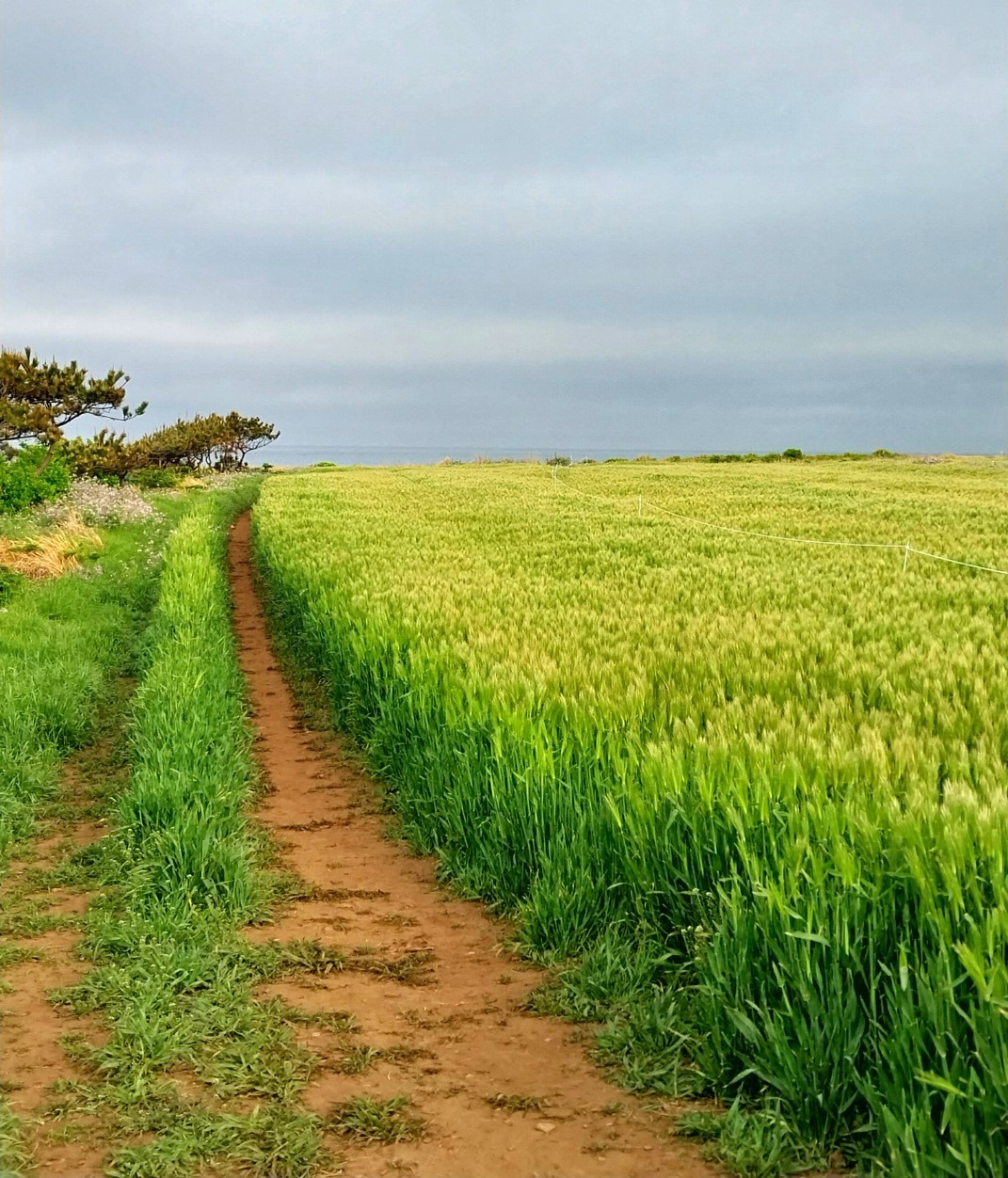 섬을 한 바퀴 돌며 올레 수첩에 10-1 스탬프를 찍었다. “섬이 참 낮고, 너르다. 눈에 거칠 게 없어 참 좋다. 가슴이 탁 트이는 것 같아.” 친구들은 몸을 쭉 펴고 숨을 깊이 들이마신다. 화창하면 화창한 대로, 그날처럼 안개가 자욱이 낀 날은 몽환적으로, 청보리밭은 방문객을 실망시키지 않는다. 보리 이삭이 패고 있는 초록의 땅. 종일 보리멍을 하고 싶다. 더도 말고 덜도 말고 오늘만 같아라.