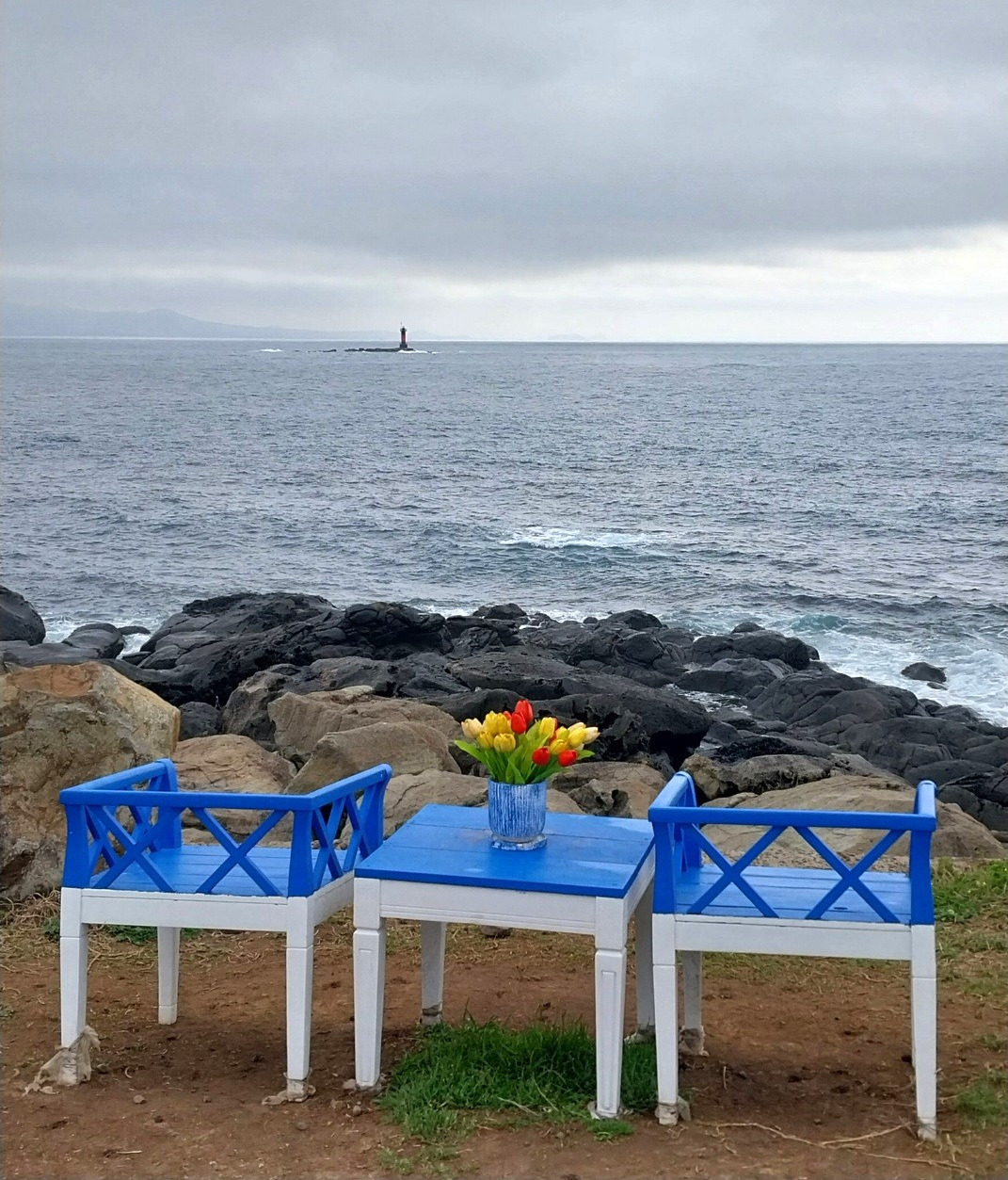 ‘블루’의 주인장은 정성을 다하여 저녁상을 차렸다. 며칠 바닷가에 나가 ‘이따 만한’ 부시리나 참돔을 건져다 대접을 하려고 별렀건만 바람과 파도가 비위를 맞춰주지 않아 하는 수 없이 숙성 회를 준비할 수밖에 없었다고 면구스러워한다. “숙성회도 맛있어요.” 위로해주었다. 회에, 얼큰한 매운탕에, 생선구이에, 베프 우영팟(텃밭)에서 따온 상추로 상이 그득하다. 진수성찬이다. 한잔이 빠지면 안 되지. 한라산을 한 잔씩 돌린 다음, 우린 주인장에게 감사를 전했다. 방으로 건너와 12시까지 이야기를 나누었다. “이제 그만 너희 방으로 가. 나, 졸려.” 옆방으로 건너갈 소음이 신경 쓰여 친구들을 쫓았다.