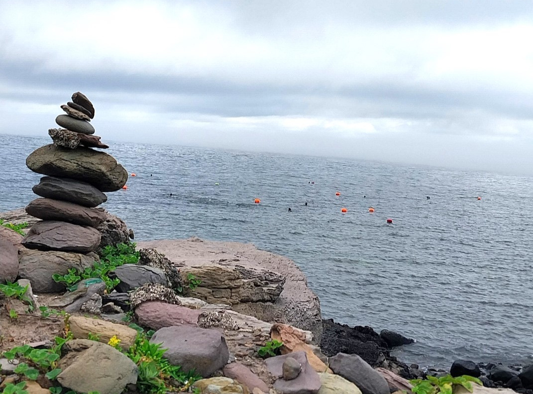삼촌들 성게작업. 바닷가에서 바라봄.