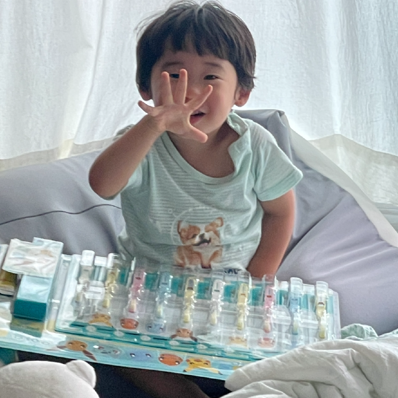 말간 아이 연이. 오랜만에 만나니 수줍음을 탔다. 귀여운 분홍색 가방을 가져와 보여주는 너. 가방 안에 무엇이 있는지 꺼내보이는 너. 할머니가 건넨 칫솔 세트를 품에 들고 친구가 다섯 개 달라면 어떻게 하냐는 너. 내가 "노노!"하면 된다니 웃으며 따라하는 너. 너무 사랑스러운 너.