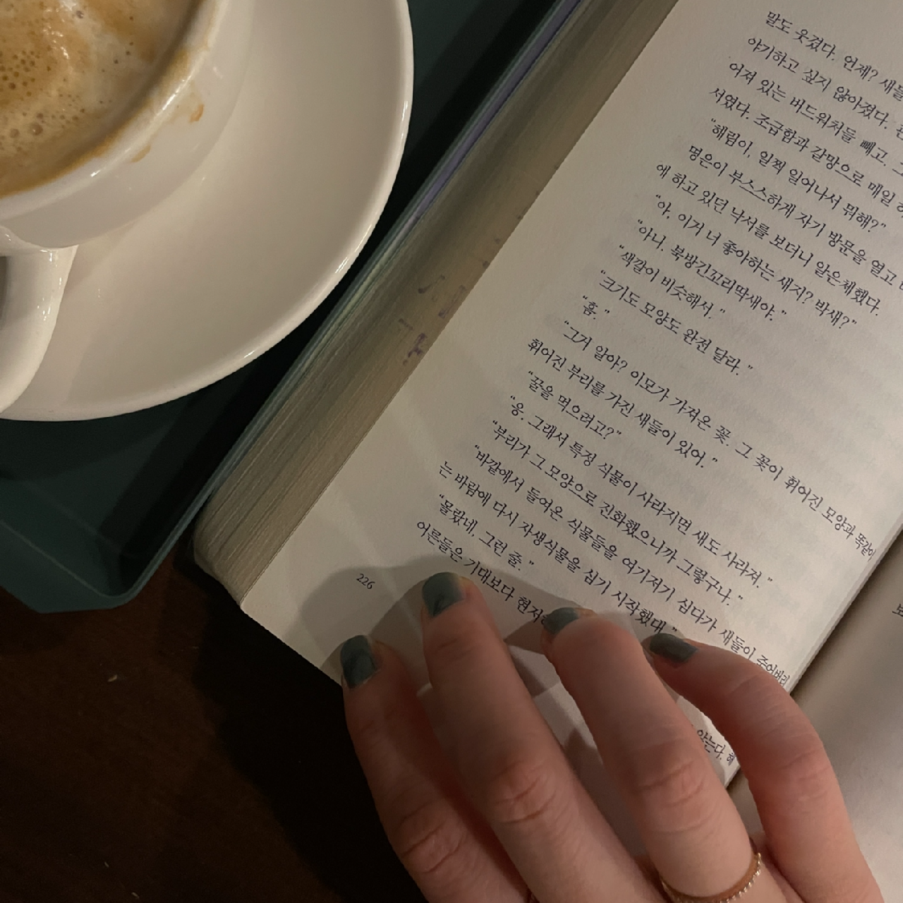 머뭇하는 마음이 들었던 네일 컬러가 생각보다 예뻐 여러 번 쳐다본 하루 끝에 카페로 향했다. 들어서는 순간 음악과 향기에 기분이 바뀌는 게 공간의 힘이겠지. 하나언니가 이곳에서 책을 읽는다고 했다. 덕분에 나도 소설에 잠시 빠져들었다. 언니가 도착했고, 여전히 눈이 컸고, 건너오는 향기가 좋았다. 발레, 오랜 인연, 모임에서의 일을 건너 언니가 처음 만났던 날에 대해 말해주었다. ‘너무 살갑게 대해주어, 많이 화사하고 다정하여, 요즘도 이런 사람이 있나 싶었다고.’ 잠시 멈춘 듯 했다. 날카롭고 무심한 단어들 사이 멈춰서 내가 알고 있으니 되었다고 위로하던 마음을, 언니의 말이 포근히 감싸안았다.