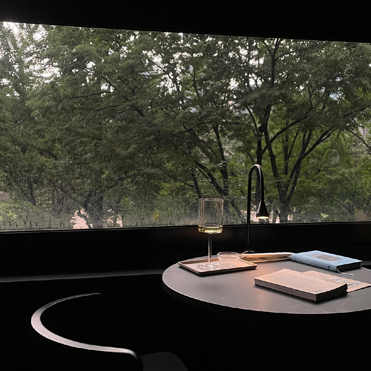 핸드폰 화면 늘 보이는 곳에 두 곳의 장소를 적어두었다. 그중 한 곳을 최근 하나언니와 갔다. 자주 찾고 싶은 곳이었는데, 시간이 어느새 흘러 참 오랜만이었다. 다른 한 곳을 가볼까 생각했다. "하루하루가 다 내 것이라는 것. 내 의지대로 움직이고 선택하고, 그 결과도온전히 내 것이라는 것. 그게 꽤 근사한 일이더라고요." <왜 오수재인가>의 대사를 보다, 가기로 결정했다. 회의에 들어가기 전 예약을 했다. 가는 길 갑자기 비가 왔는데, 괜히 예약했다는 생각은 들지 않았다. 공간은 여전했고, 혼자 들렀던 몇 년 전이 생각났다. 숲, 나무, 초록이 보이는 창을 앞에 두고 글을 읽었다. 해가 비치듯 노을이 지는데, 비가 투두둑 오던 풍경은 몽환적이었다. 밝은 지하철을 타기가 조금 싫었다. 그 고요하고 적막한 마음 그대로 집에 돌아가고 싶다는 생각을 하며, 짧은 여행을 마무리했다.