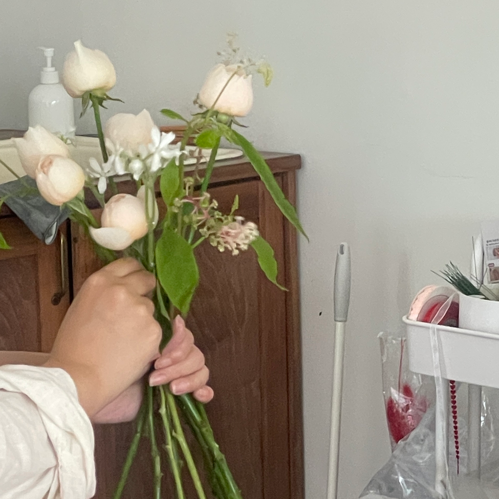 “오늘 그날이야!”라며 설레는 마음으로 머리를 만졌다는 사장님. 가감없이 호감을, 아낌을 표현하는 모습에 마음이 일렁였다. 그 사랑을 간직해오는 게 쉽지만은 않았을텐데 싶어서 애틋했다. 맑은 마음으로 상대를 대하는 일이, 상처가 없어서가 아니라, 생채기가 있었음에도 불구하고라는 것을 안다. 그걸 딛고 또 용기내어 마음을 열어내보인다는 것도. 손님이 많지 않기를, 바쁘지 않기를 생각했다던 사장님의 소망처럼 오후 내내 온전한 우리의 시간이 되었다. 사장님의 공간도, 사장님이 마법처럼 만들어내는 다발도, 또 사람 자체도 좋은 신기한 곳. 정성과 진심으로만 빚어낸 시간이 정말 많이, 많이 많이 고마웠다. 행복했다.
